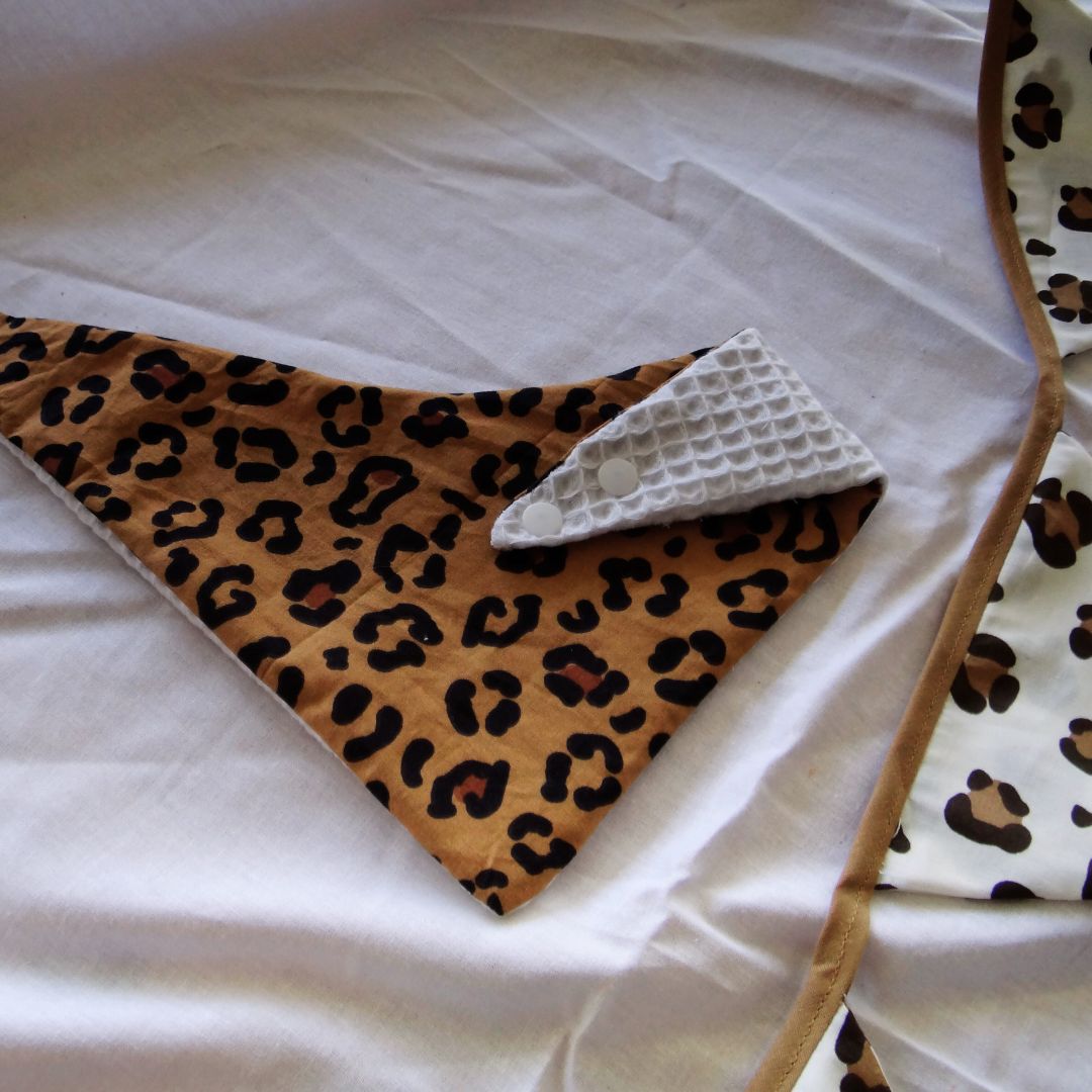 Bavoir bandana léopard en coton pour bébéProduit fait à la commande, envoi sous 1 à 2 semaines.
