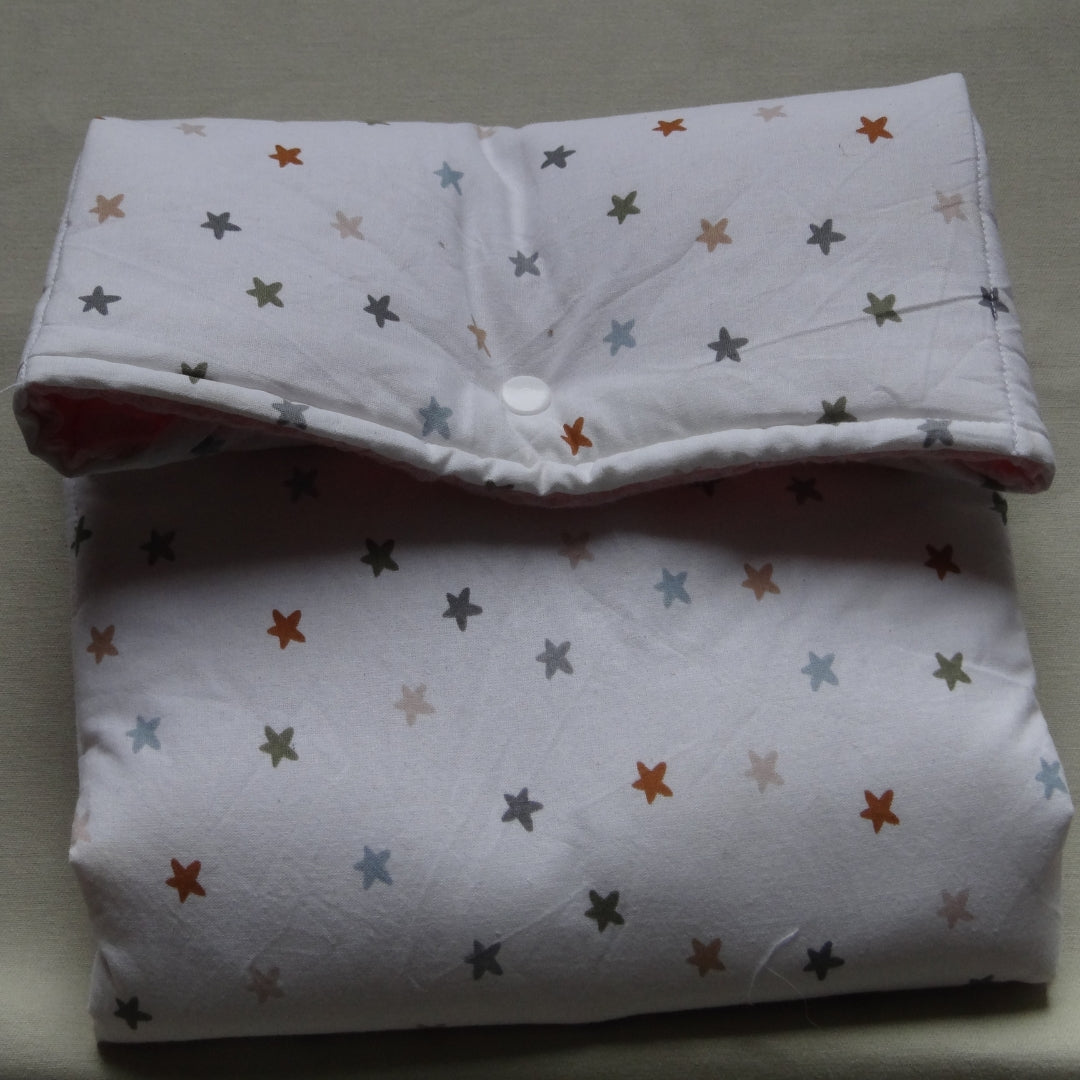 Matelas à langer nomade – Motif Etoiles & Nid d’abeille roseProduit fait à la commande, envoi sous 1 à 2 semaines.