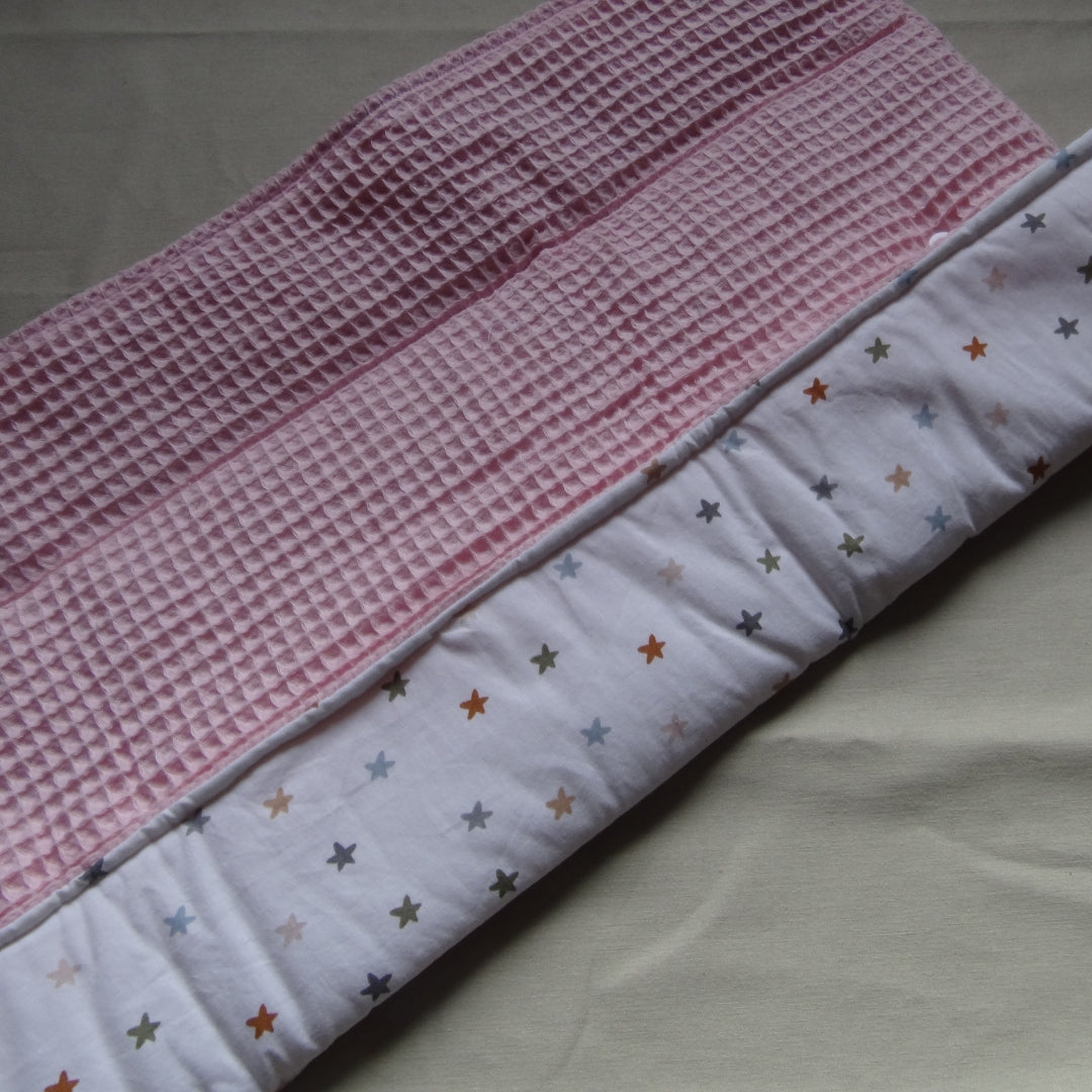 Douceur garantie avec le tissu en nid d’abeille rose clair côté intérieur. Ce coton texturé est agréable au toucher et absorbant. Idéal pour changer bébé en tout confort, même en dehors de la maison.